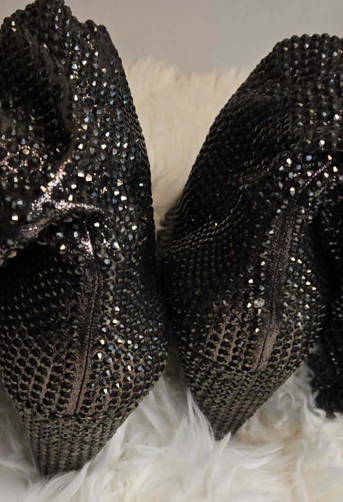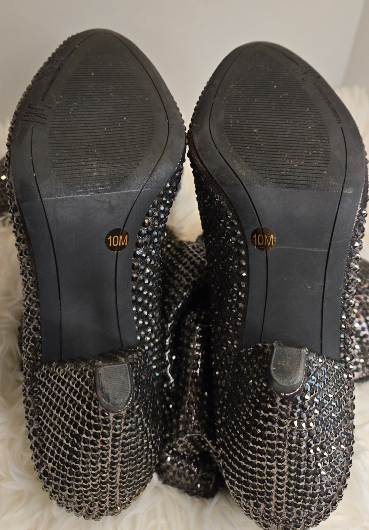 These 3-inch cone heel boots are fashionable to say the least. The pull-on design ensures a smooth and sleek fit. The stretch material accommodates wider calves for all-day comfort. The sequined embellishments add a touch of glamour and sparkle. Perfect for a night out, these boots will elevate any outfit. Very good condition.