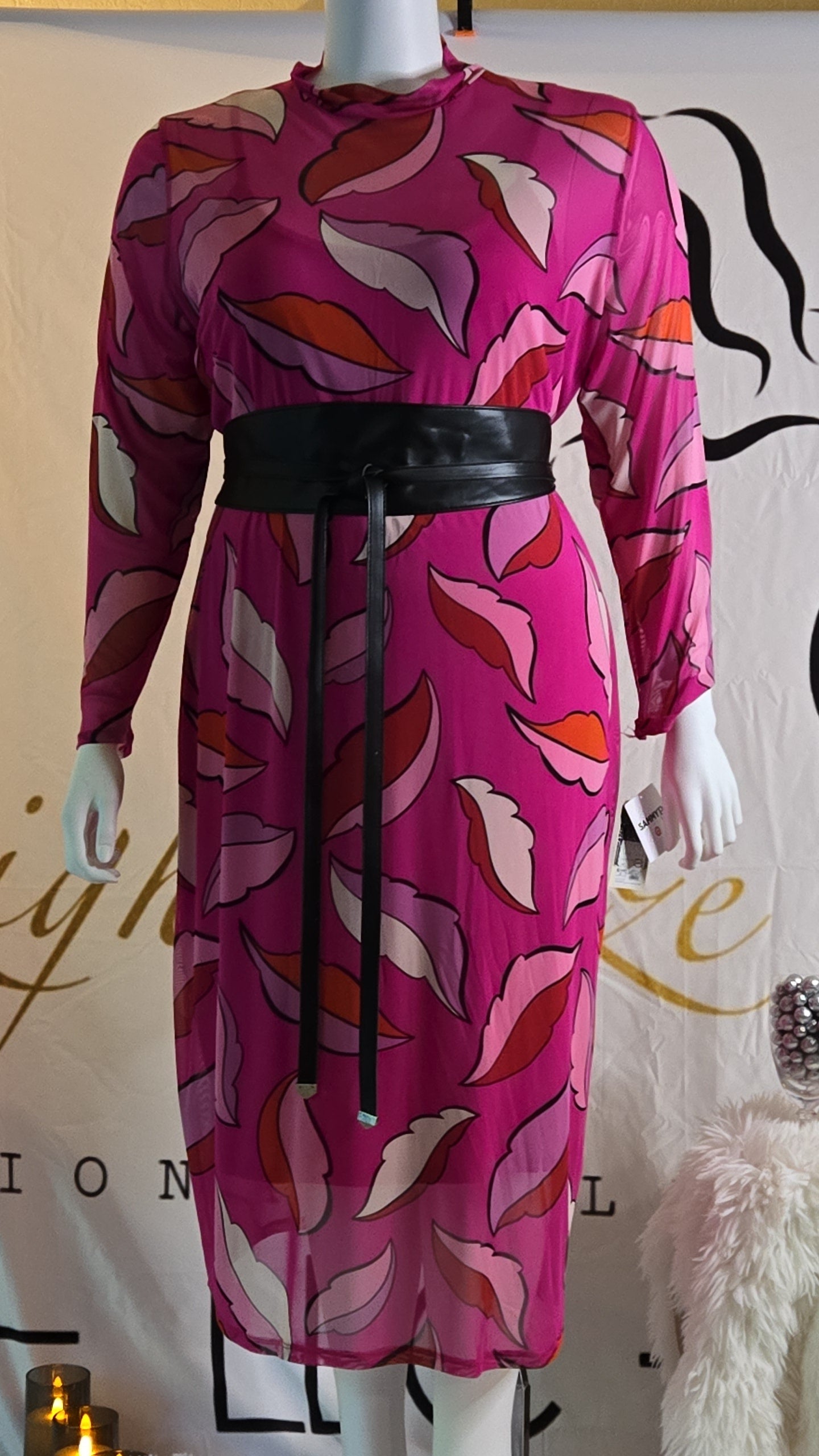 Sheer dress with underneath lining. Very comfortable breathable material. This sheer dress drapes beautifully with its soft, flowing fabric. The added lining provides a comfortable and confident wear. You'll feel the gentle breeze on your skin with this breathable material. A perfect choice for staying cool and stylish all day long. This dress is an effortless addition to your wardrobe. Belt not included.