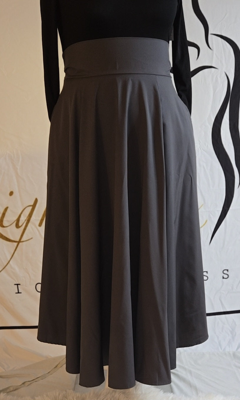 Hi waist maxi skirt, zips in back has pocketsThis chic and versatile maxi skirt is a must-have for any wardrobe. The high waist design flatters your figure, while the flowing fabric creates an elegant silhouette. Convenient pockets add functionality without sacrificing style. An invisible zipper discreetly placed at the back ensures a smooth and comfortable fit. Ties at waist. Pair this skirt with a tucked-in blouse or a fitted top for a timeless and sophisticated look.
